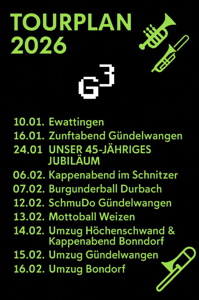 Die Gundelsteiner Guggenmusik Gündelwangen e.V. zählt momentan 30 aktive Mitglieder und 6 verschiedene Register.